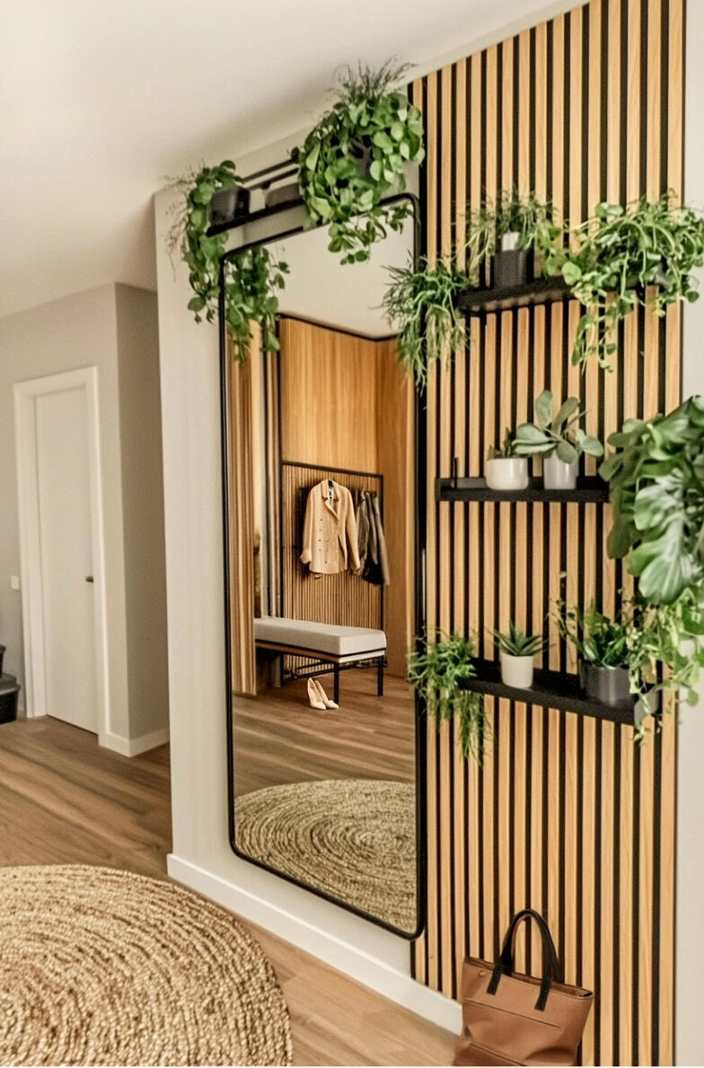 Je vous montre ici comment transformer une simple entrée en un espace lumineux et stylé. Avec 5 objets bien choisis, miroir graphique, panneau bois, tapis en jute, plantes tombantes, vous pouvez facilement recréer cette ambiance naturelle chez vous, sans exploser le budget.